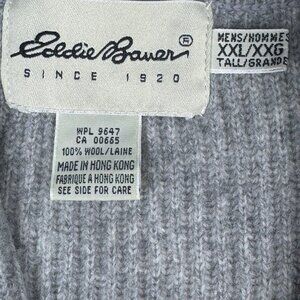 Eddie Bauer XXL Mens Gray Wool Sweater Ribbed V-Neck Hong Kong Winter Vintage