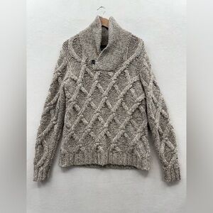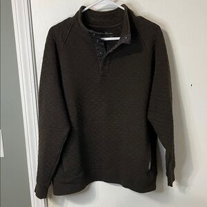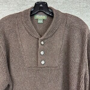 Eddie Bauer Y2K Henley Sweater Brown Chunky Fisherman Knit Ribbed Mens Large