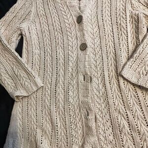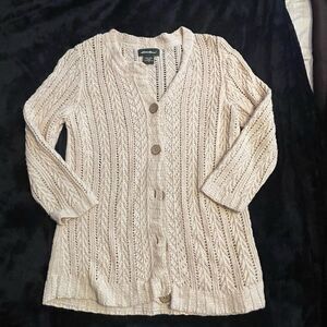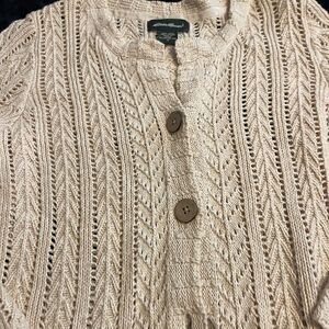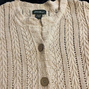 Eddie Bauer beige cardigan sweater 55% linen, size small