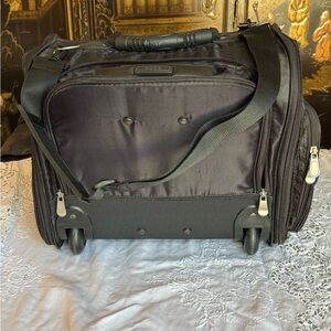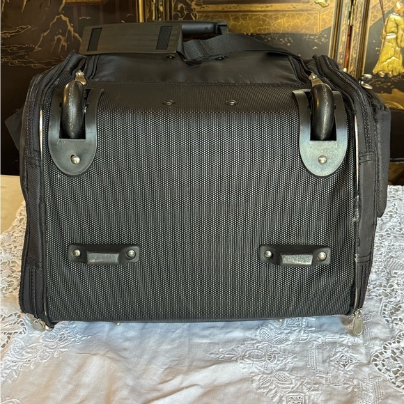 Eddie Bauer black expandable handle, rolling small pet carrier.