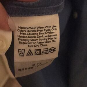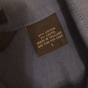 97% cotton. Long sleeve. Chambray. Stretch wrinkle resistant
