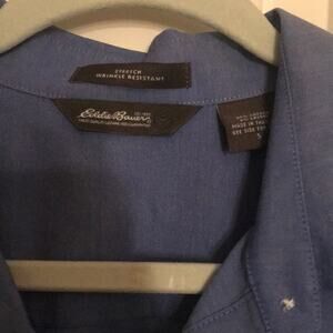 Eddie Bauer blue stretch wrinkle resistant button down chambray