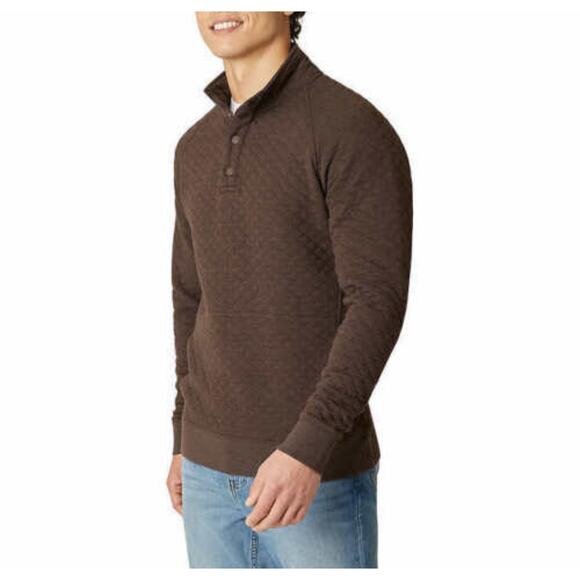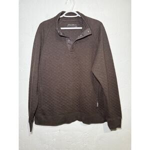 Eddie Bauer brown quilted henley sweater mens large classic fit preppy outdoor