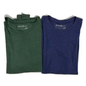 Includes one short sleeve and one long sleeve Eddie Bauer T-shirt and women’s size small. These soft high-quality cotton fabric also has a bit of stretch.