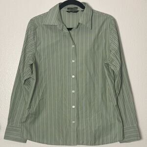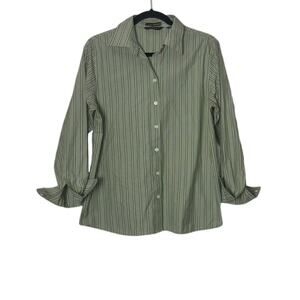 Eddie Bauer striped button up 100% cotton Woman's size Large green