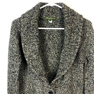 Eddie Bauer cardigan wool blend sweater black cream shawl neck button down M