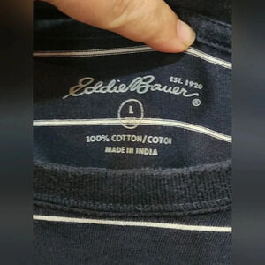 Eddie Bauer crew neck blue and white striped tee Size Large
