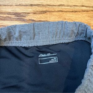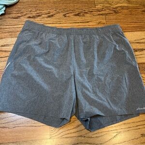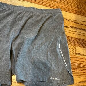 Eddie Bauer grey running shorts with a reflective stripe, pull on, size XL
