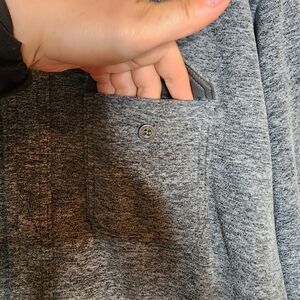 Eddie Bauer grey long sleeve button up shirt, shacket, lightweight overshirt. soft fleece fabric.