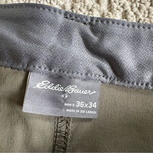Eddie Bauer hiking convertible tech pants outdoor green zip off 36 X 34 long