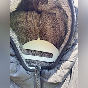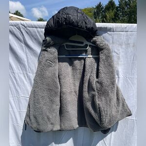 Eddie Bauer kids reversible fleece / down printed coat. Size L 14/16.
