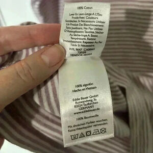 Eddie Bauer ladies large purple and white boatneck 100% cotton 3/4 length sleeve