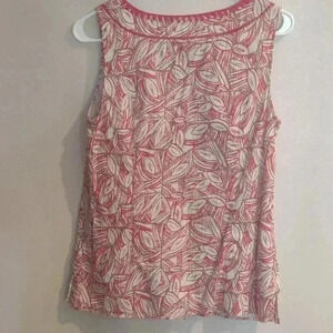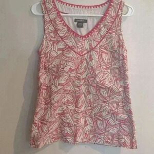 Eddie Bauer leaf print v neck embroidered tank top size medium