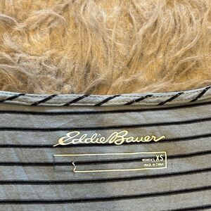 Eddie Bauer light blue and black stripped vneck rayon stretch long sleeve shirt