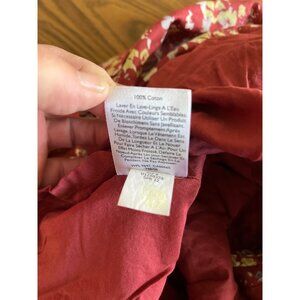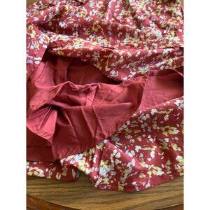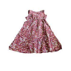 Eddie Bauer lined sleeveless v-neck floral design midi dress size Large. Has cinch tie waist. Rust colored with green blue white flowers. Good pre-owned condition.