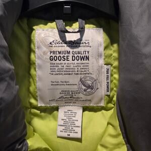 Eddie Bauer mens 700 fill power goose down vest sz M gray with neon green