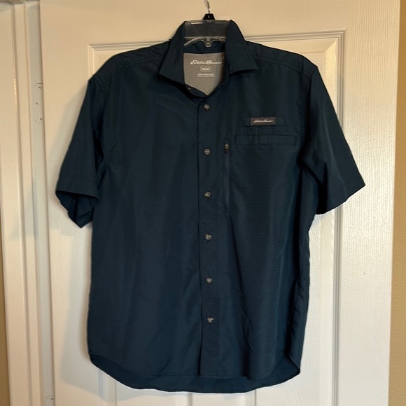 Eddie Bauer men’s blue short sleeve button down shirt size medium