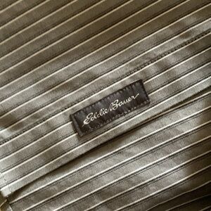 Eddie Bauer mens button down long sleeve shirt button down collar gray striped