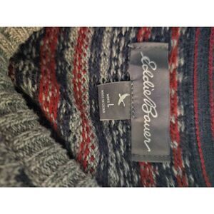 Eddie Bauer mens crew neck gray/ navy/red wool blend sweater. Size L.