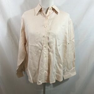 Eddie Bauer pale pink linen long sleeve button down - womens LP - armpit to armpit = 22"