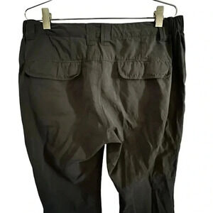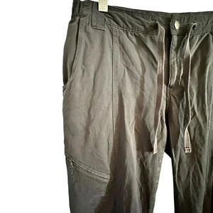 These Eddie Bauer pants are a versatile addition to any wardrobe. The drawstring closure and flat front give them a stylish look, while the mid-rise and bootcut leg style provide comfort and practicality. The gray color and nylon, spandex, and cotton material make them suitable for any season, and they are machine washable for easy care. The pants also feature a zipper accent and cargo style, adding a touch of edge to the design. They are available in women's size 12 with a waist size of 32 inches and an inseam of 29.5 inches. Made in Bangladesh, these pants are a great choice for any fashion-conscious woman who values comfort and style.