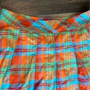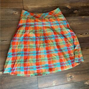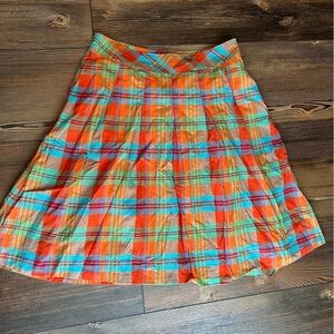 Eddie Bauer pleated cotton full plaid skirt size 8 fully lined orange green