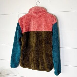Eddie Bauer quest sherpa snap mock color block brown pink and blue