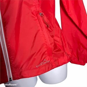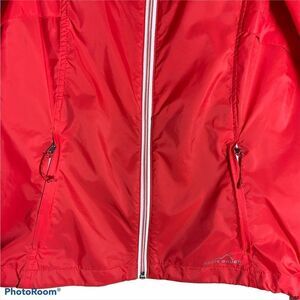Eddie Bauer red orange windbreaker coat jacket small hood hooded front zip EUC