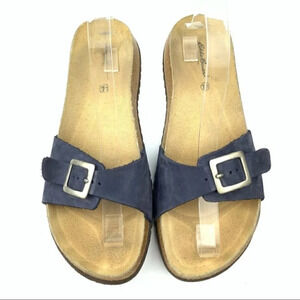 Eddie Bauer Womens sandals size 11 navy blue suede buckle slides