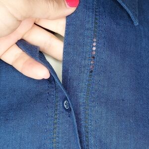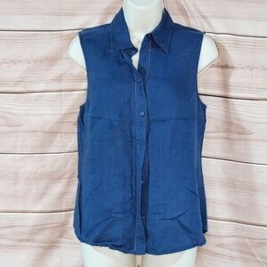 Eddie Bauer shirt linen sleeveless collar button up crochet detail navy blue SP