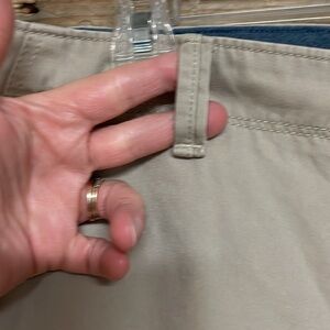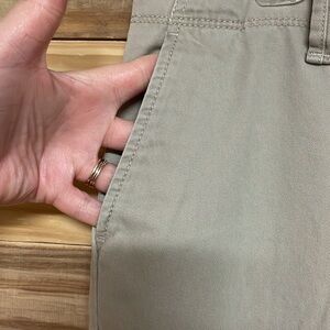 These Eddie Bauer chinos in a classic khaki color offer a timeless style with their flat front design and straight leg cut. Crafted from a comfortable cotton blend, they are perfect for both business casual settings and everyday wear. The versatile khaki shade ensures they pair effortlessly with a variety of tops and shoes.