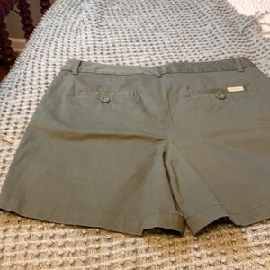 17” waist 5” length Eddie Bauer slightly curved shorts with stretch olive like new size 10