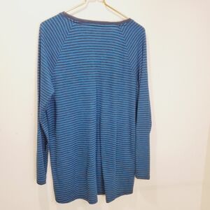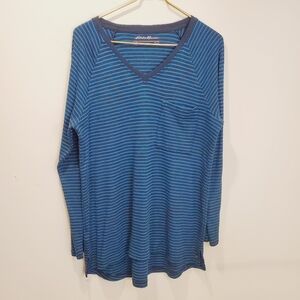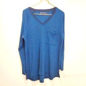 Eddie Bauer stripes V Neck Blue sweater size L