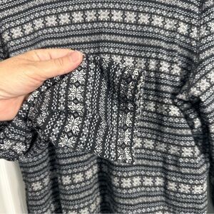 100% cotton Eddie Bauer size large women's snowflake patterned turtleneck in gray and white. Long sleeve. Great for winter and the holidays!