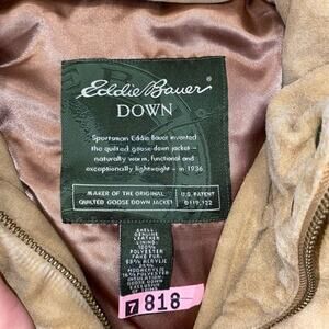 Eddie Bauer tan leather down zip front puffer vest | Sz M