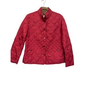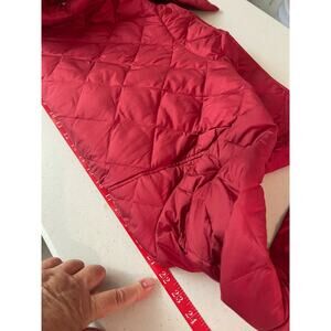 Eddie Bauer woman’s jacket LP red 550 fill power quilted goose down snap front