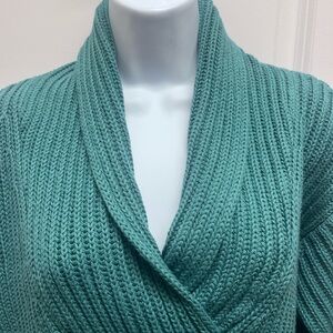 Eddie Bauer women Green shawl Collar Sweater cozy knit pullover classic fall SP