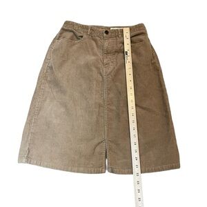 Eddie Bauer women size 4 tan midi corduroy slit front skirt with belt loops and pockets no stretch. In excellent used condition. See pics for sizing and overall condition. Preppy/ goblin core vibes.