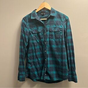 Eddie Bauer women’s Teal and Navy Plaid Button-Down Shirt classic fit size M