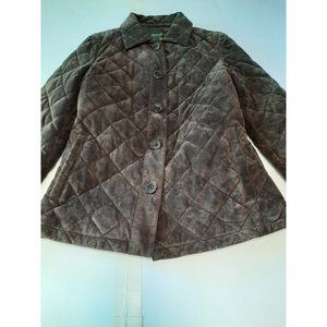 Eddie Bauer womens brown quilted button front heavy suede casual coat size S