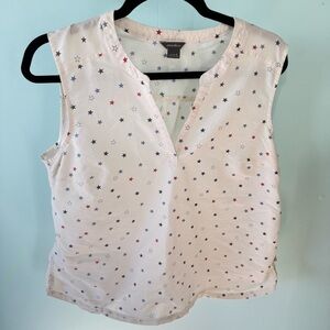 Eddie Bauer women's patriotic stars cream sleeveless tank top L 4th of July