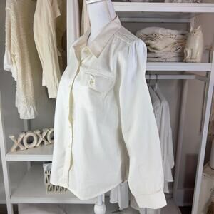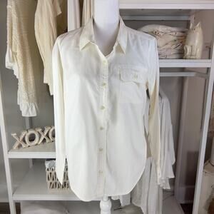 Eddie Bauer women's petite Large eggshell white button up blouse, office #1808