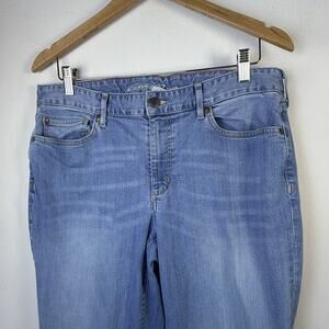 Eddie Bauer womens tall 14 curvy Straight Stretch Acid Wash Denim Blue Jeans