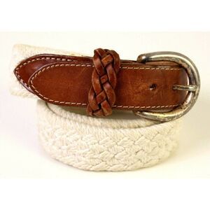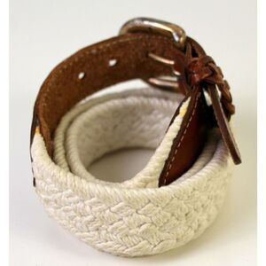 Eddie Bauer BROWN REAL LEATHER 1 1/8"Wd WOVEN WHITE CORD WOMEN'S BELT S/M (A47