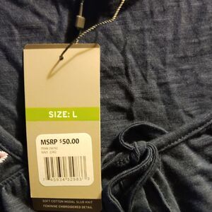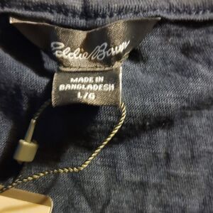 This stylish Eddie Bauer top features a sleeveless design with a chic tie front and embellished details. The black and white color scheme adds a classic touch, making it a versatile addition to any wardrobe. Perfect for both casual outings and more polished occasions.