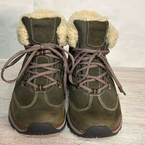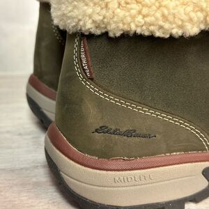 Step into comfort and style with these Eddie Bauer ankle boots, featuring a cozy cream lining and a durable chunky sole. The brown color adds a timeless touch, making them perfect for both casual outings and outdoor adventures. Designed for functionality and fashion, these boots are a must-have for any wardrobe.