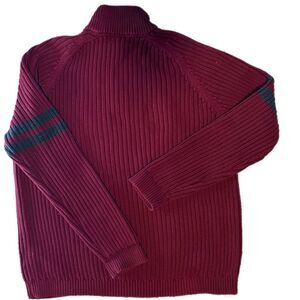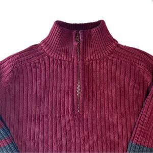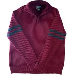 Eddie Bauer Burgundy and Grey Cable Knit Sweater with Zipper Collar. Size L. EUC