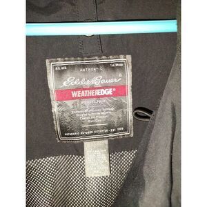 Eddie Bauer MENS XXL Weatheredge Waterproof Rain Jacket Hooded Black No Hood. In excellent condition. Missing hood but zipper in place for replacement. Please see the photos for more details and exact measurements. An excellent outer shell / rain / snow jacket for extreme weather conditions. Vintage Item! Likely was 300 to 400 bucks or more new...Fast Shipping!