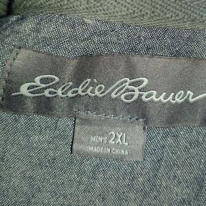 Elevate your style with this Eddie Bauer men's pre-owned pullover sweater! In a classic olive green, this sweater features a convenient 1/2 zipper and is in great condition.