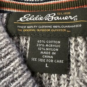 Eddie Bauer Mens Sweater Size Large Pullover Heathered Gray V Neck